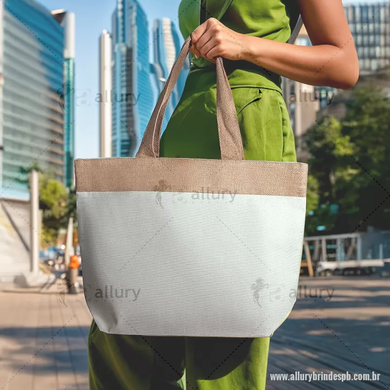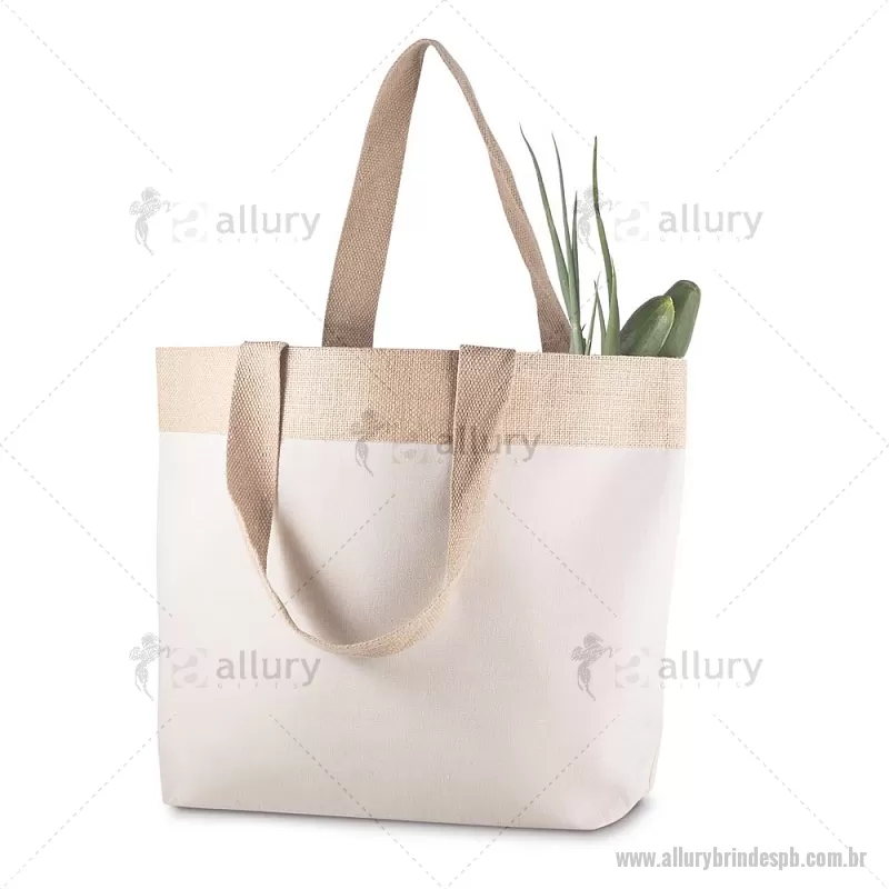 Sacola Ecológica em Algodão e Juta 220g/m² (34x48x15cm) Sacola em Algodão Cru 220g/m² com detalhe em Juta. Alça com altura de 24 cm, ideal para transporte. Dimensão do Produto: 34x48x15cm (AxLxP) Peso do Produto: 0,192kg Volume: 24L - - ALLPBSAC108