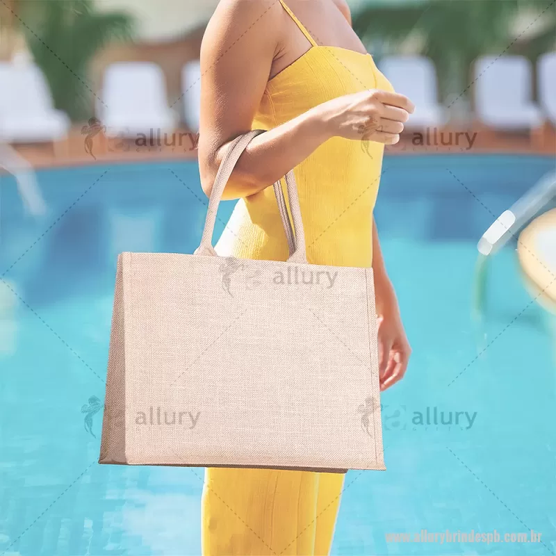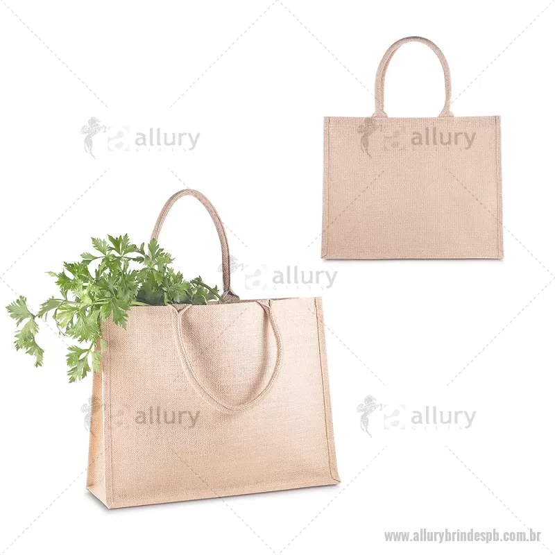 Sacola em Juta 360g/m² (34x43x16,5cm) Sacola de Juta 360g/m². Alças resistentes de Algodão Cru. Base plana para maior estabilidade, interior revestido em plástico PP. Alça com altura de 20 cm, ideal para transporte. Dimensão Produto: 34x43x16,5cm (AxLxP) Peso do Produto: 0,246kg Volume: 24L - - ALLPBSAC110