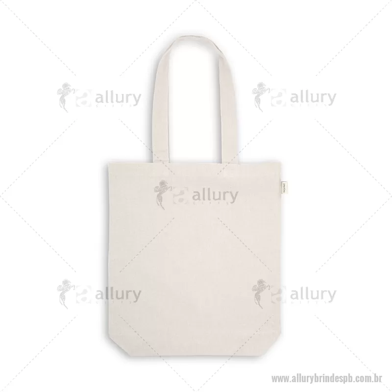 Sacola em 70% algodão reciclado e 30% poliéster reciclado (220g/m²), com alças de 65 cm. O tecido é sem tingimento, e utilizado na sua cor original, sem produtos químicos de tingimento ou branqueamento , contribuindo para um menor impacto ambiental. Medidas: 380 x 420 x 100 mm Peso do Produto (g.): 127 - - ALLPBSAC112