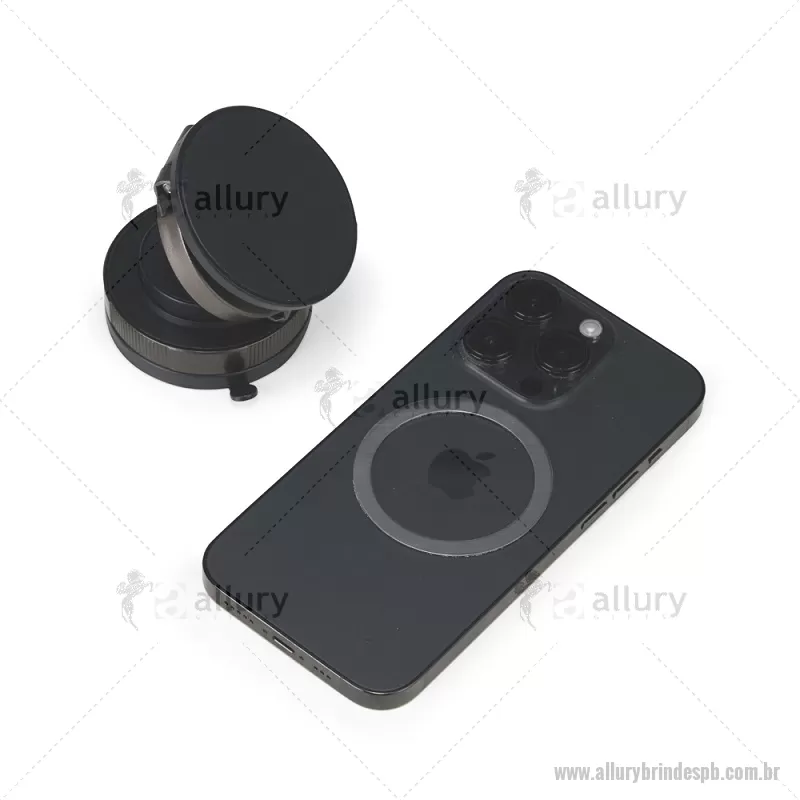 Suporte Magnético Para Celular Suporte magnético em plástico ABS com articulação em diferentes ângulos e rotação de 360 graus no próprio eixo. Possui superfície magnética para fixação de aparelhos na vertical ou horizontal, compatível com dispositivos magnéticos ou com o anel adaptador incluso. Conta com mecanismo giratório para pressão da ventosa em superfícies lisas. Acompanha anel magnético adesivo, placa plástica com adesivo, kit de lenços e chave Allen. Altura : 3,1 cm x Largura : 6 cm x Circunferência : 18,8 cm /br> Peso aproximado (g): 76 - - ALLPBTEC546
